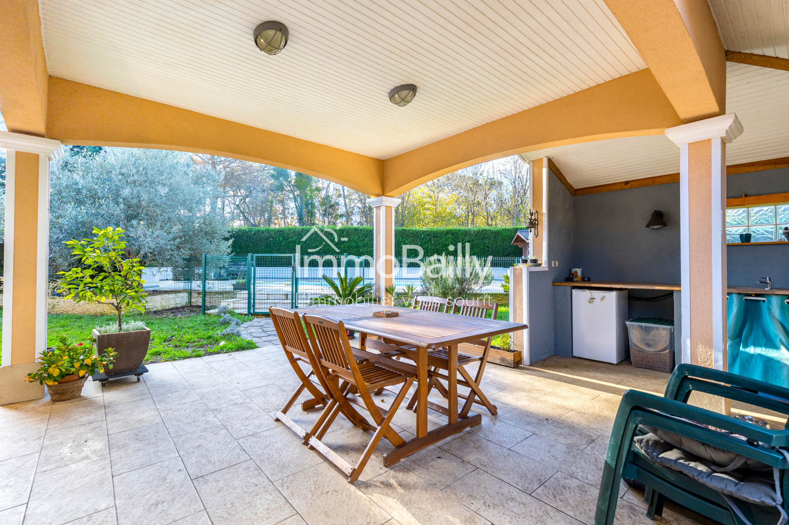 A l'extérieur, vous disposez d'une terrasse couverte avec cuisine d'été, et une piscine au chlore.