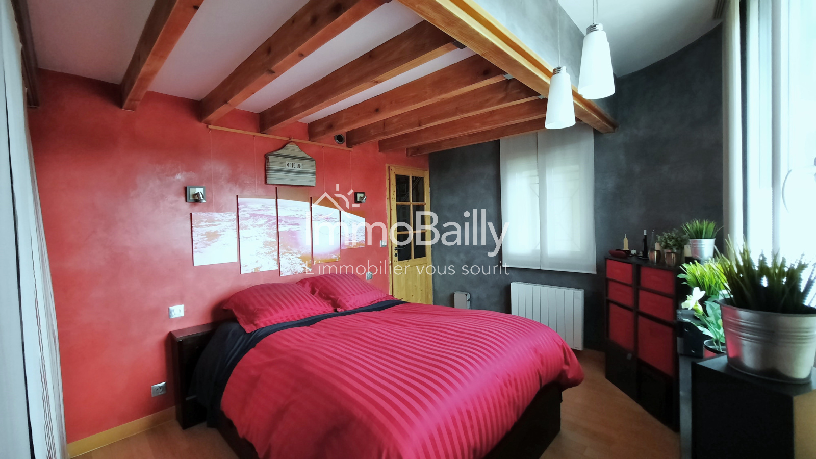 A l'étage, une grande chambre avec un accès aux combles non aménageables.