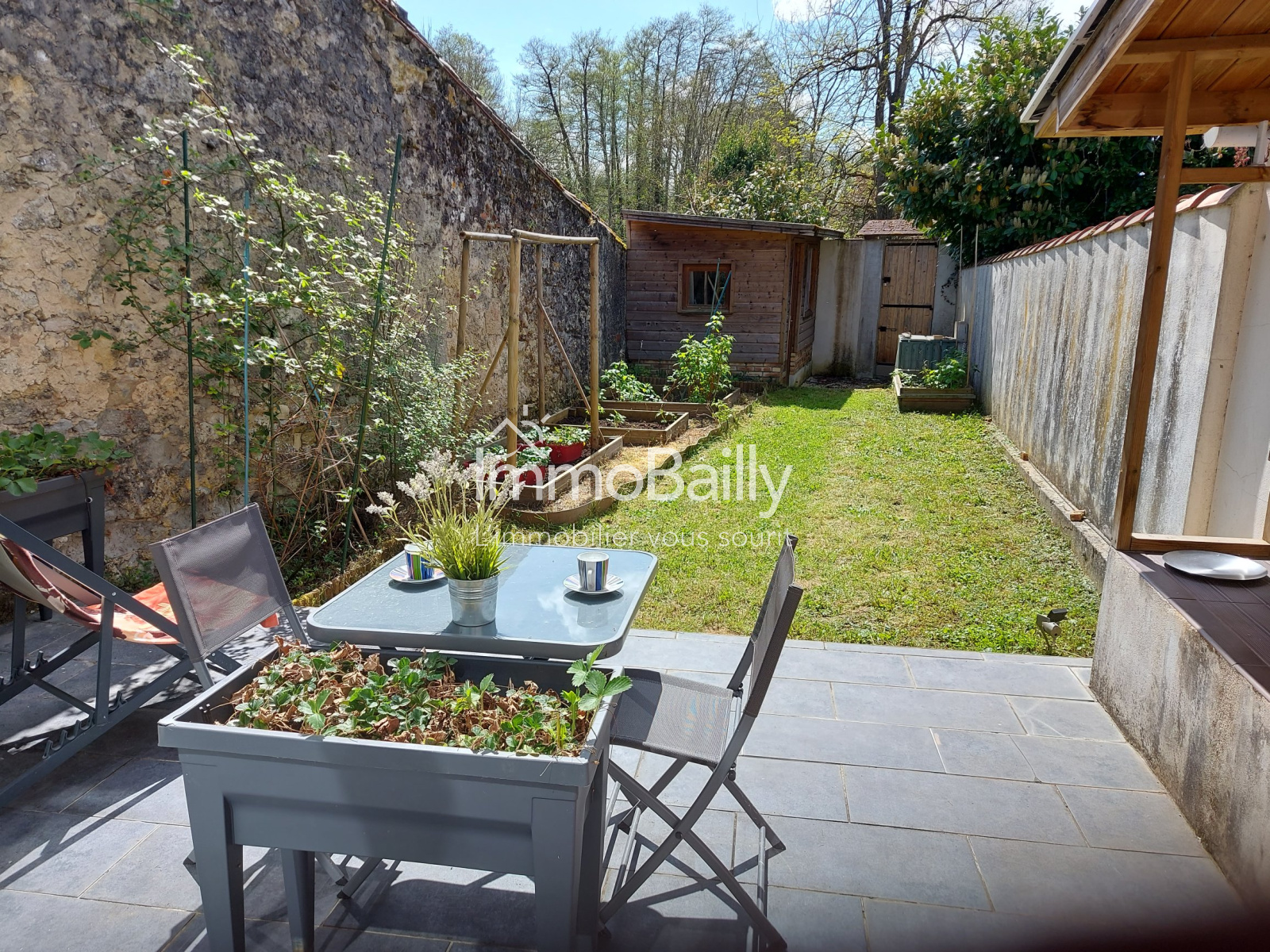 A l'exterieur, profitez d'une terrasse plein sud et d'un jardin intimiste d'environ 70 m² avec un cabanon pour optimiser le rangement des outils et/ou vélos.